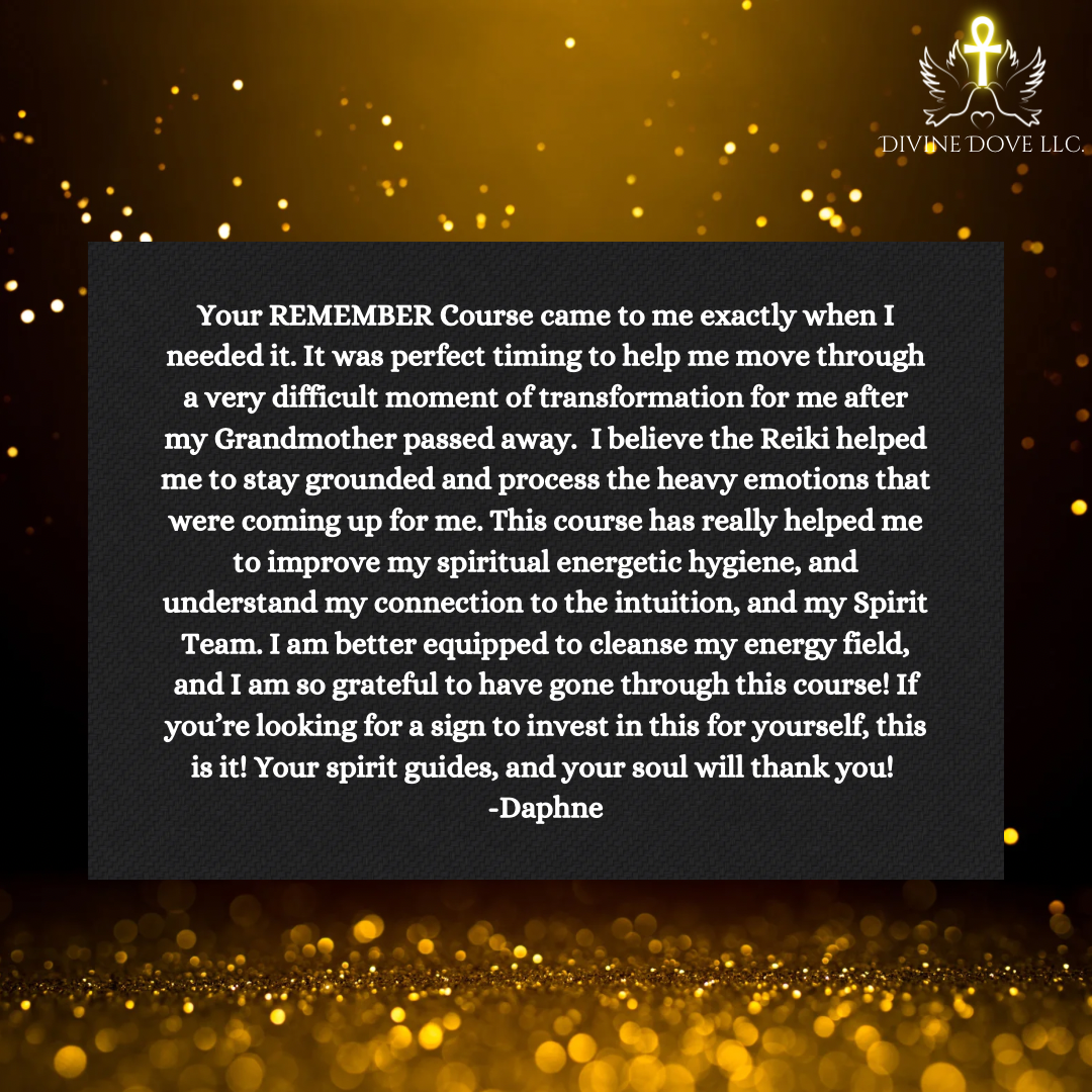 REMEMBERÂ is crafted with love, to provide you with the energetic tools/practices to help you safely develop your spiritual gifts at your own pace.